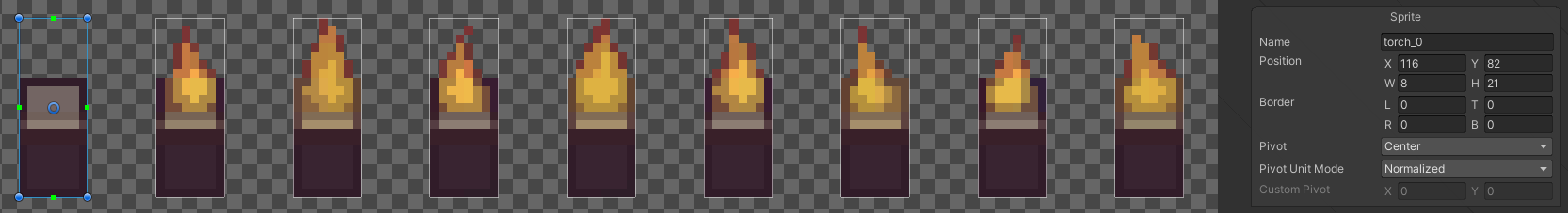 然后我们还有一个不是 16 × 16 的块,也就是火把,这里我们用 8 × 21,也就是说我们不一定要根据它规定的样式进行切片。可以自己定义规则